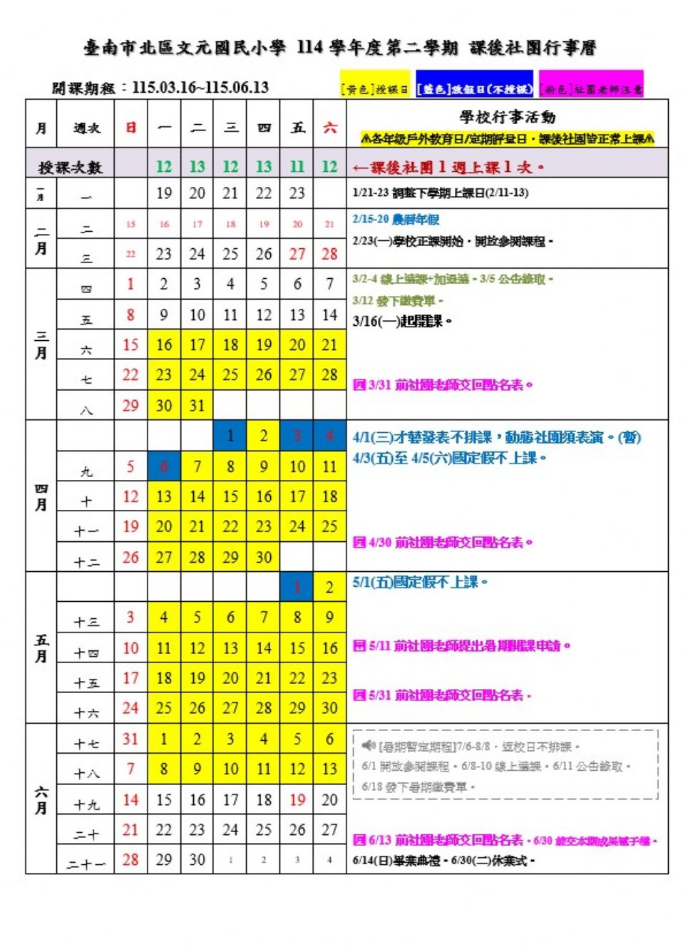 ☆114下學期開課期程:3/16(一)~6/13(六);每月1&15日、學校活動&補假日、國定(連)假日皆不排課。